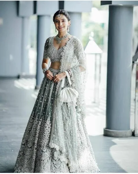 Be the first to review “Graceful Grey Color Net Wedding Wear Chine Stitched Work Lehenga Choli For Women”